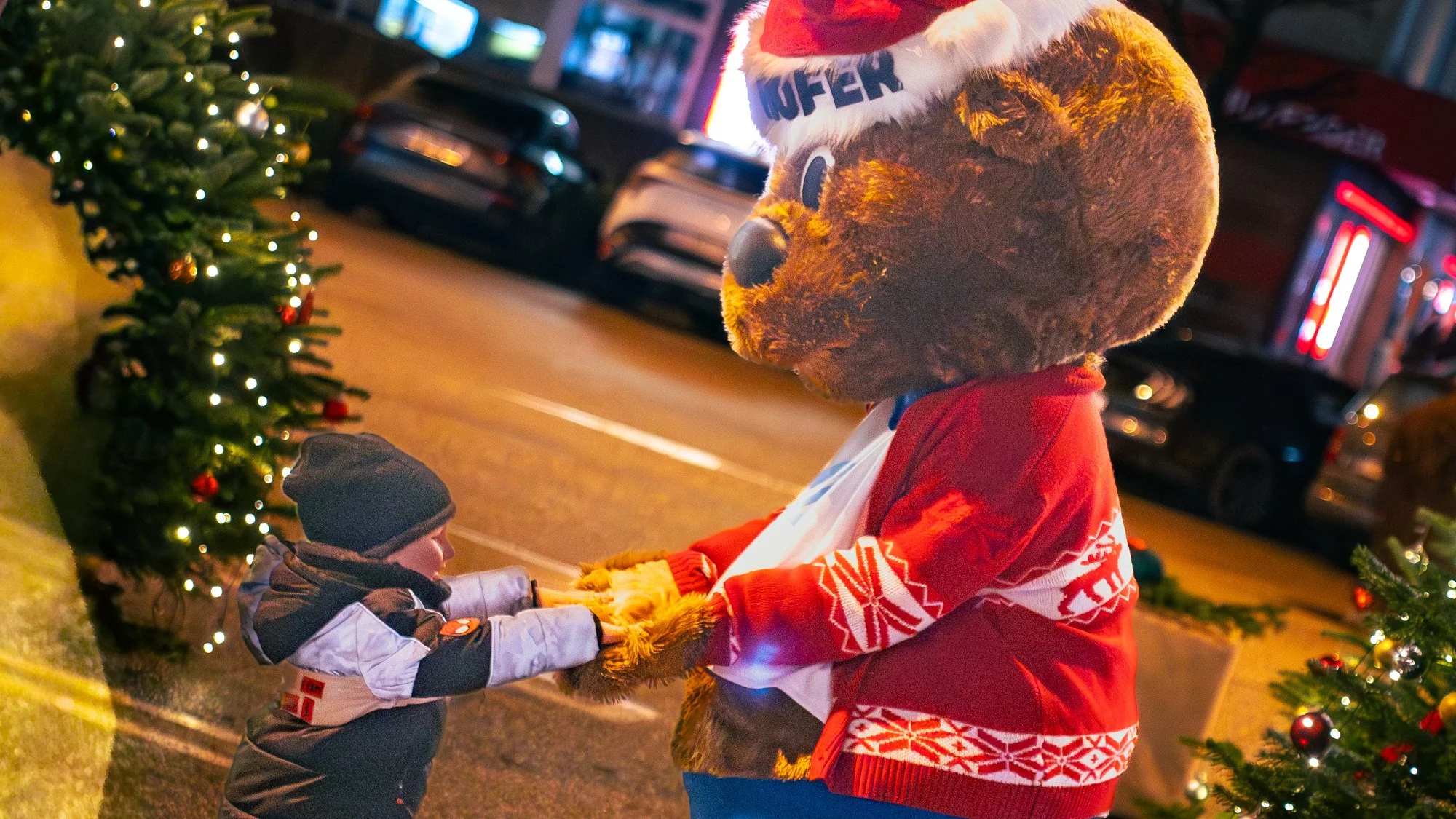 Erlebnis-Weihnachtsmarkt Salzburg mit riesigem Hofer-Maskottchen | Foto: Sabine Hütter, society-photography.at