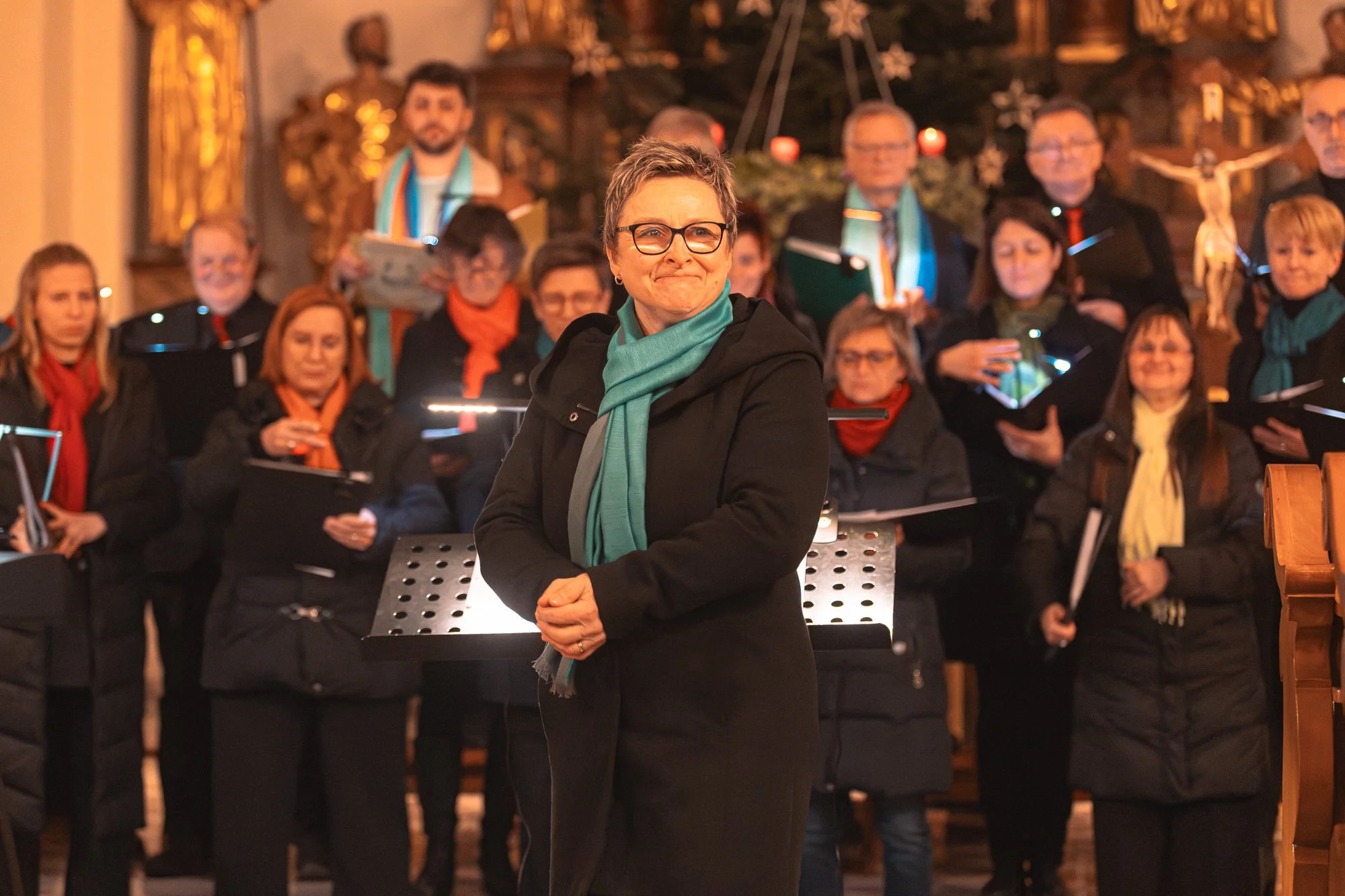 Das Konzert selbst folgte einer durchdachten Dramaturgie und führte das Publikum in ein breitgefächertes Repertoire. Advent- und Weihnachtslieder bildeten die bekannte Basis. Sakrale Stücke, Spirituals und Gospels für rhythmische Kontraste und moderne Weihnachtstitel für angenehme Abwechslung. Die Auswahl trug die Handschrift der beiden versierten, fachlich profunden Chorleiterinnen Mag. Karin Leitgeb (Ensemble Vocativ) und Verena Maier-Mohamed BSc (Happy Voices).