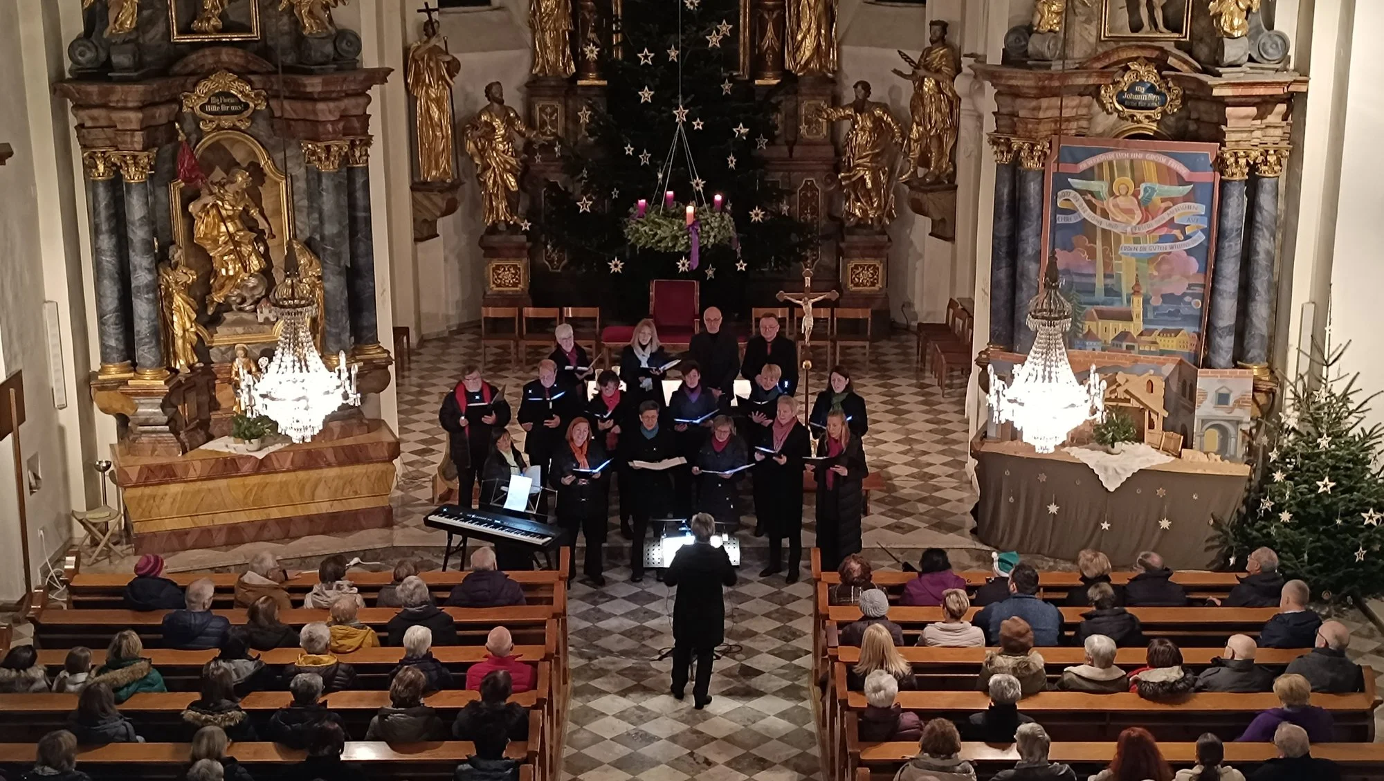 Der Advent neigte sich dem Ende zu und in die weihnachtliche Vorfreude mischte sich das Interesse an einer weiteren Darbietung von zwei außergewöhnlichen Chören im steirischen Vulkanland. Die Pfarrkirche füllte sich zügig, die Bänke reichten kaum aus. Das Adventkonzert von Verena’s Happy Voices mit dem Gastchor Ensemble Vocativ bildete einen festlichen Höhepunkt in der Fehringer Vorweihnachtszeit.